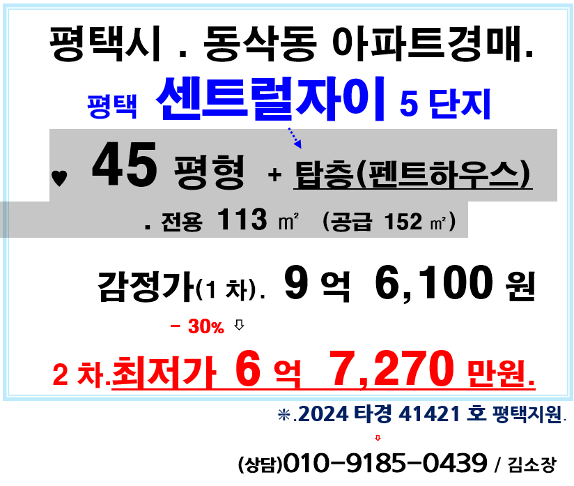평택 학세권아파트.동삭동 평택센트럴자이 5단지 45평형 펜트하우스 2차경매(2024타경 41421)310 본문