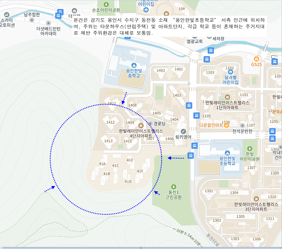 광교산등산로와 한빛초교와 한빛중학교