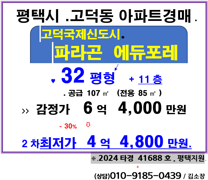 고덕국제신도시아파트. 평택시 고덕동 고덕국제신도시 파라곤 에듀포레 32평형경매(24-41688)324 본문