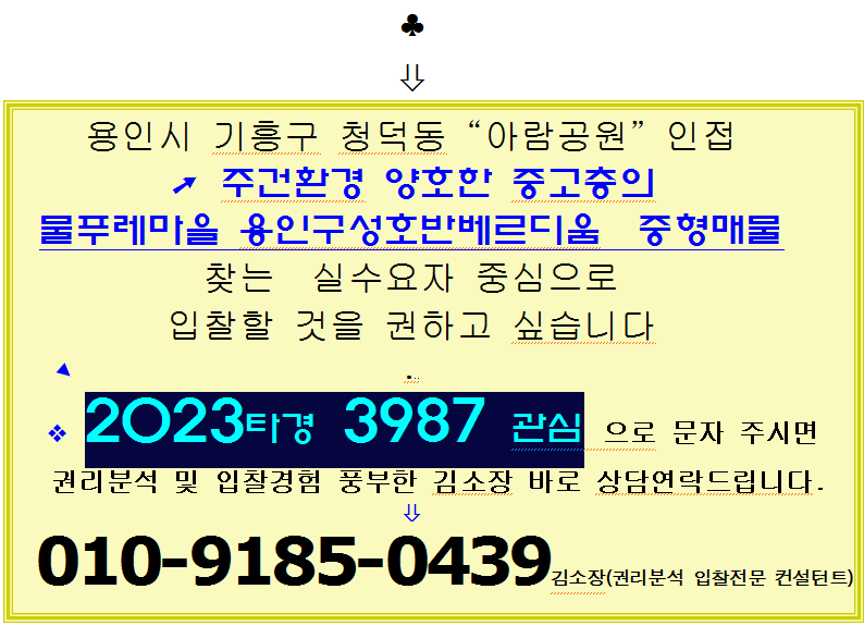 | 용인 수지구 중형아파트. 동천동 한빛마을 래미안 이스트팰리스3단지 63평형 2차경매(23-86227)416 (0) | 2025.03.29 |