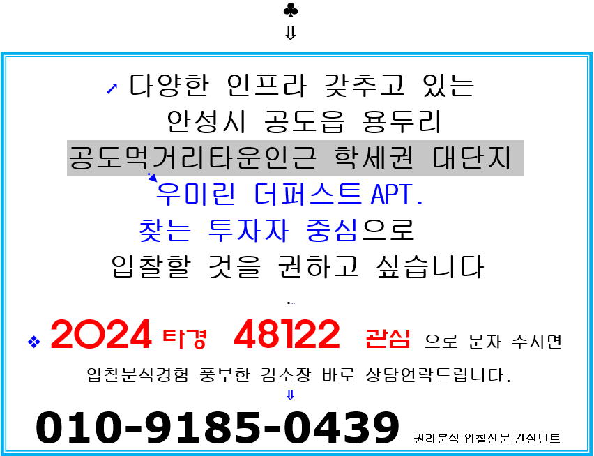 안성시 공도읍 학세권아파트. 안성공도 우미린더퍼스트 29평형 2차경매(2024타경 48122)407 본문