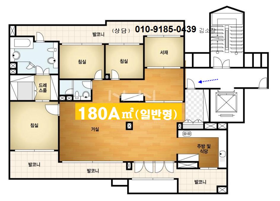 방 4개. 드레스룸 1.욕실겸한 화장실 2개