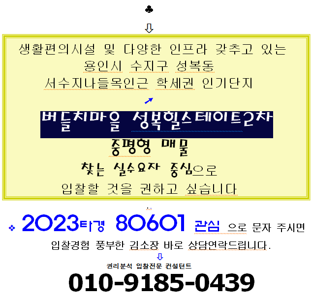 노란궁뎅이 2025. 5. 6. 13:37용인 수지구 학세권아파트. 성복동 버들치마을 성복힐스테이트 2차 60평형 2차경매(23-80601)516