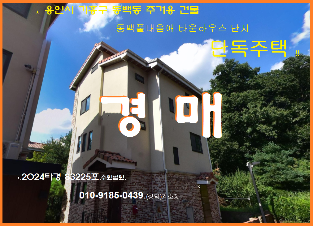 용인시 동백동 단독주택. 기흥구 동백풀내음애 타운하우스단지 3층주택2차경매(24-83225)519
