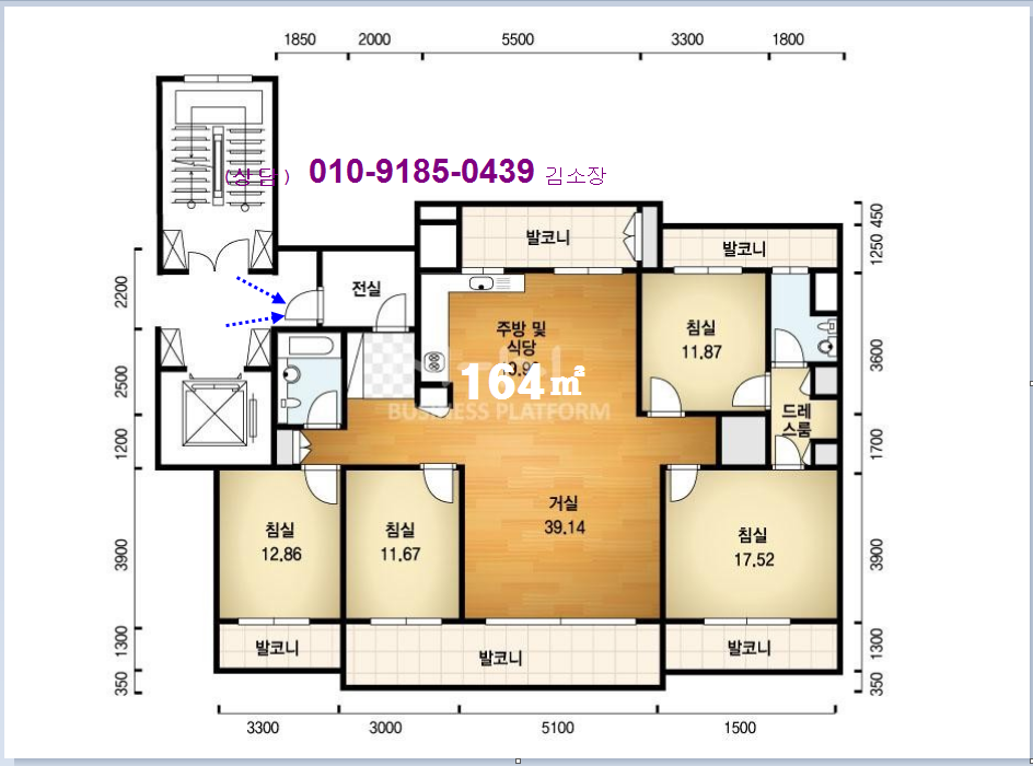 방 4개,드레스룸 1.욕실 겸 화장실 1개