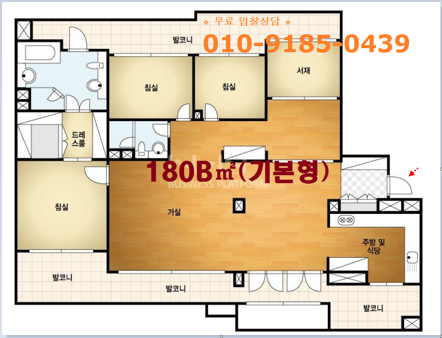 방 4개,드레스룸 1.욕실 겸 화장실 2개