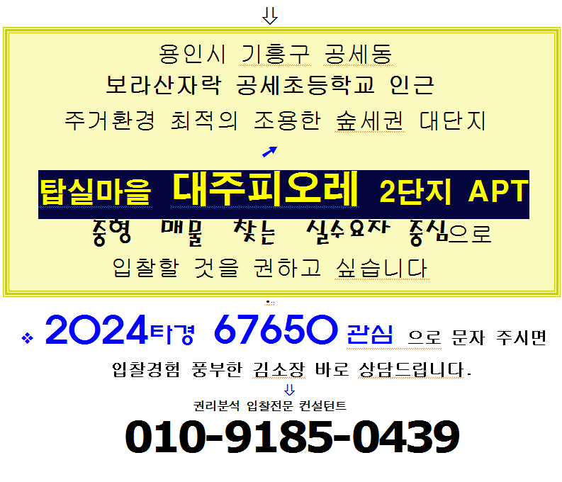용인 기흥구 숲세권중형아파트. 공세동 탑실마을 대주피오레 2단지 54평형 2차경매(24-67650)530 본문