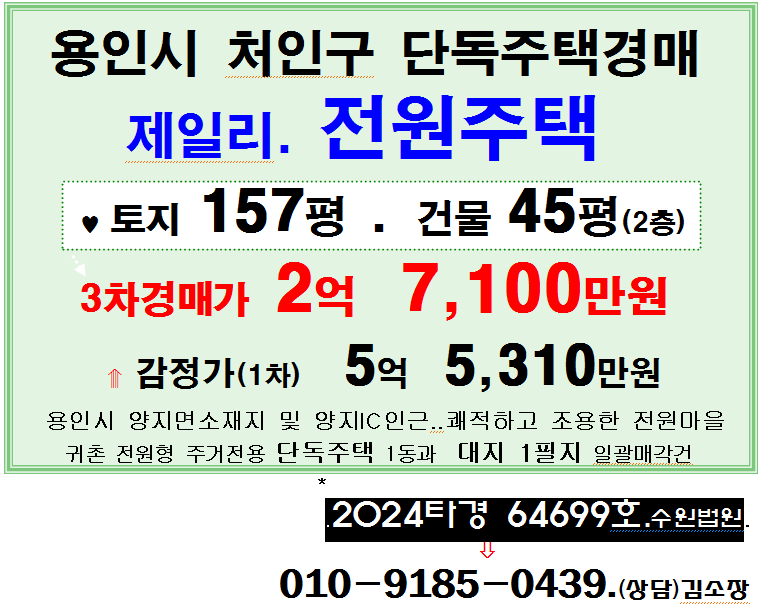 용인 처인구 전원주택. 양지면 제일리 전원마을 2층구조 단독주택 3차경매(2024-64699)702 본문