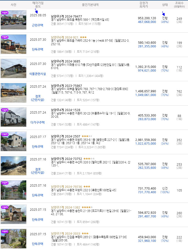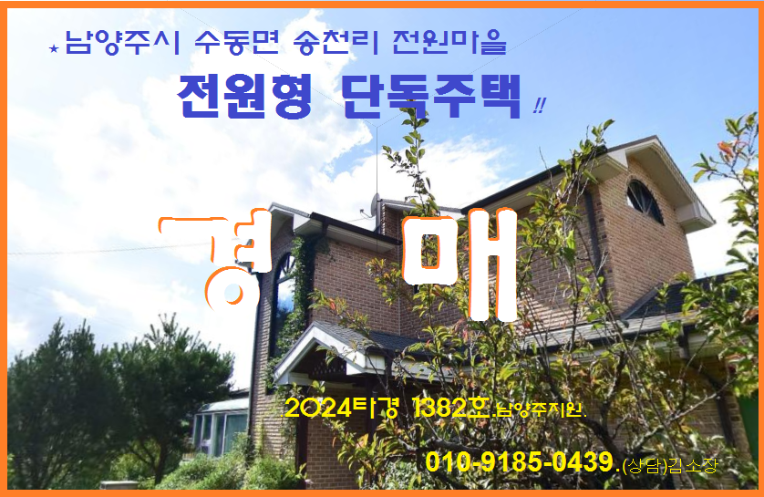 노란궁뎅이 2025. 7. 5. 14:29남양주시 전원주택 매각. 수동면 구운천변 2층 단독주택 3차경매(2024-1382)715