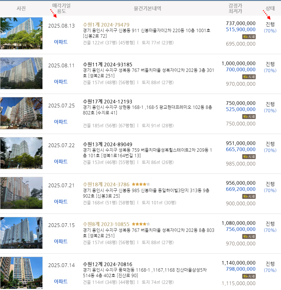 | 용인 수지구 학세권 대단지아파트. 풍덕천동 진산마을삼성5차 44평형 2차경매(24-70816)714 (0) | 2025.07.07 |