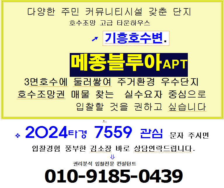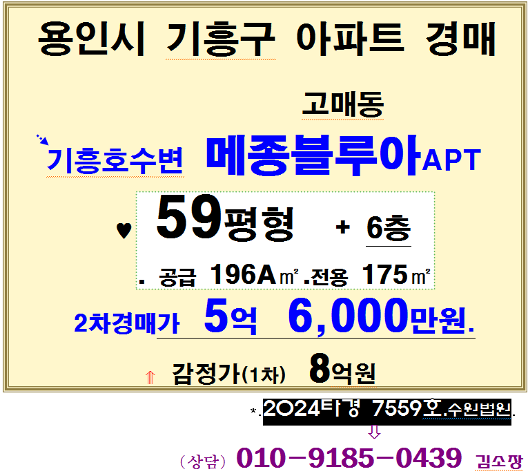 | 용인 기흥호수 뷰 중형아파트경매. 기흥구 고매동 메종블루아 59평형 2차경매(24-7559)903 (0) | 2025.08.04 |