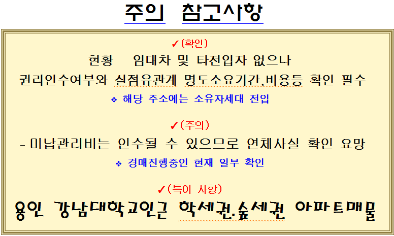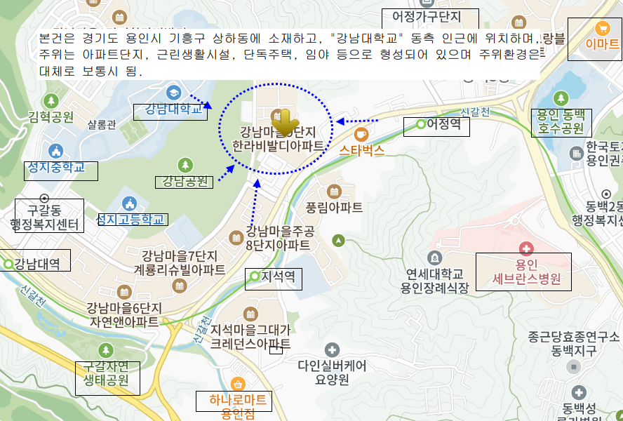 노란궁뎅이 2025. 8. 4. 17:48용인 강남대학교인근 아파트. 기흥구 상하동 강남마을 한라비발디 33평형 2차경매(24-64910)822