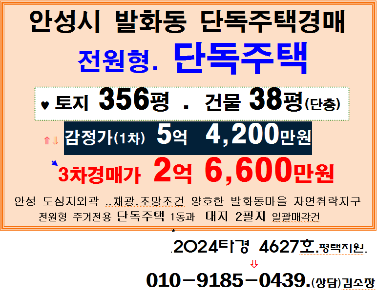 안성시 시골 단독주택 매각. 발화동 넓은 정원 갖춘 전원주택 3차경매(24-4627)908 본문