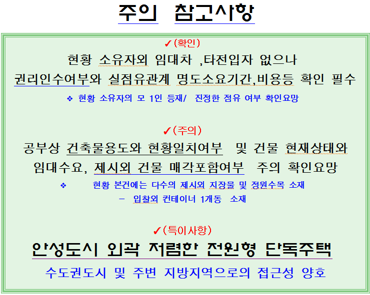 | 안성시 공도읍 주택경매. 도심인근 진사리 전원형 단독주택 3차경매(2024-42735)721 (0) | 2025.06.30 |