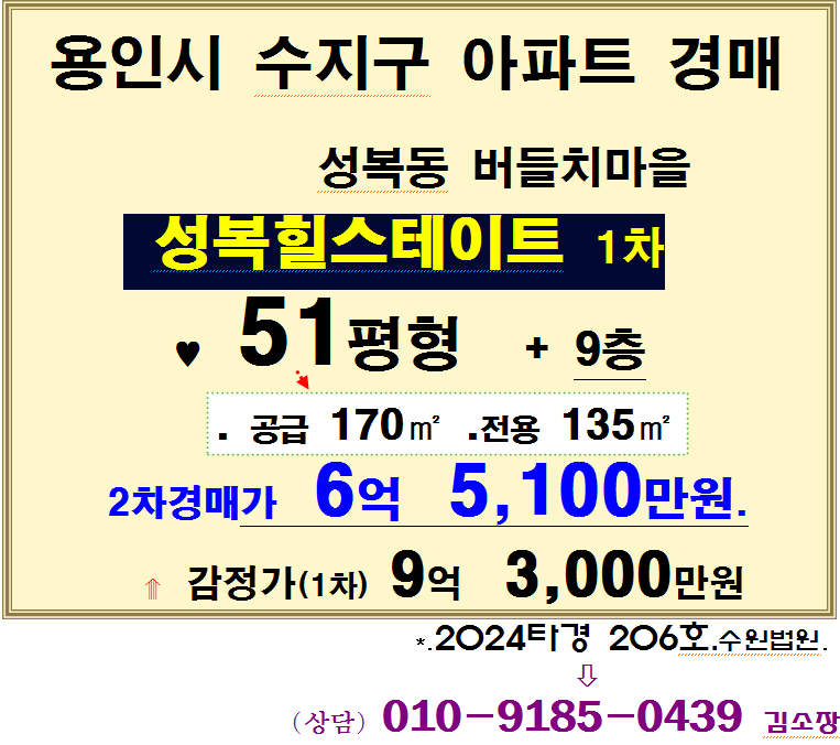 용인 수지구 숲세권아파트 .성복동 버들치마을 힐스테이트1차 51평형 2차경매(24-206)902