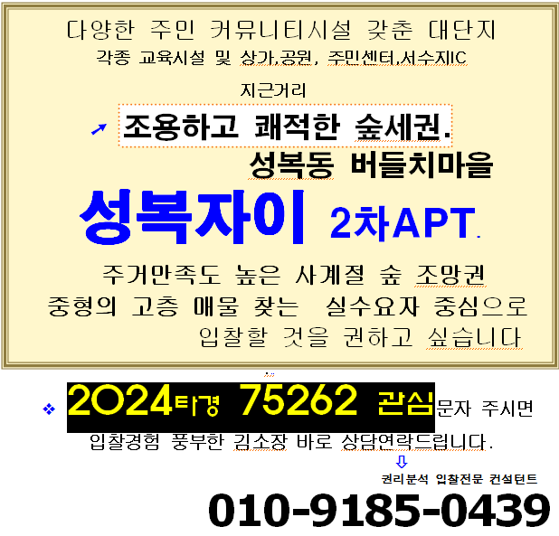 노란궁뎅이 2025. 8. 27. 19:41용인 수지구 숲세권아파트. 성복동 버들치마을 성복자이 2차 56평형 고층 2차경매(24-75262)912