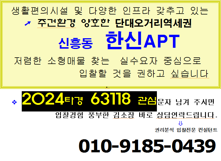노란궁뎅이 2025. 9. 6. 19:06성남시 단대오거리역세권아파트. 수정구 신흥동 한신APT 25평형 2차경매(24-63118)922