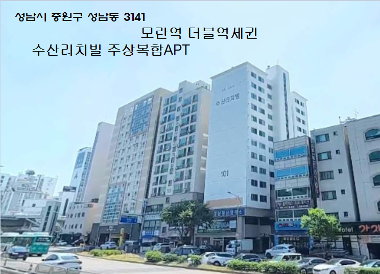 성남시 중원구 모란역세권아파트. 성남동 수산리치빌 주상복합 35평형 2차경매(24-52873)922 본문
