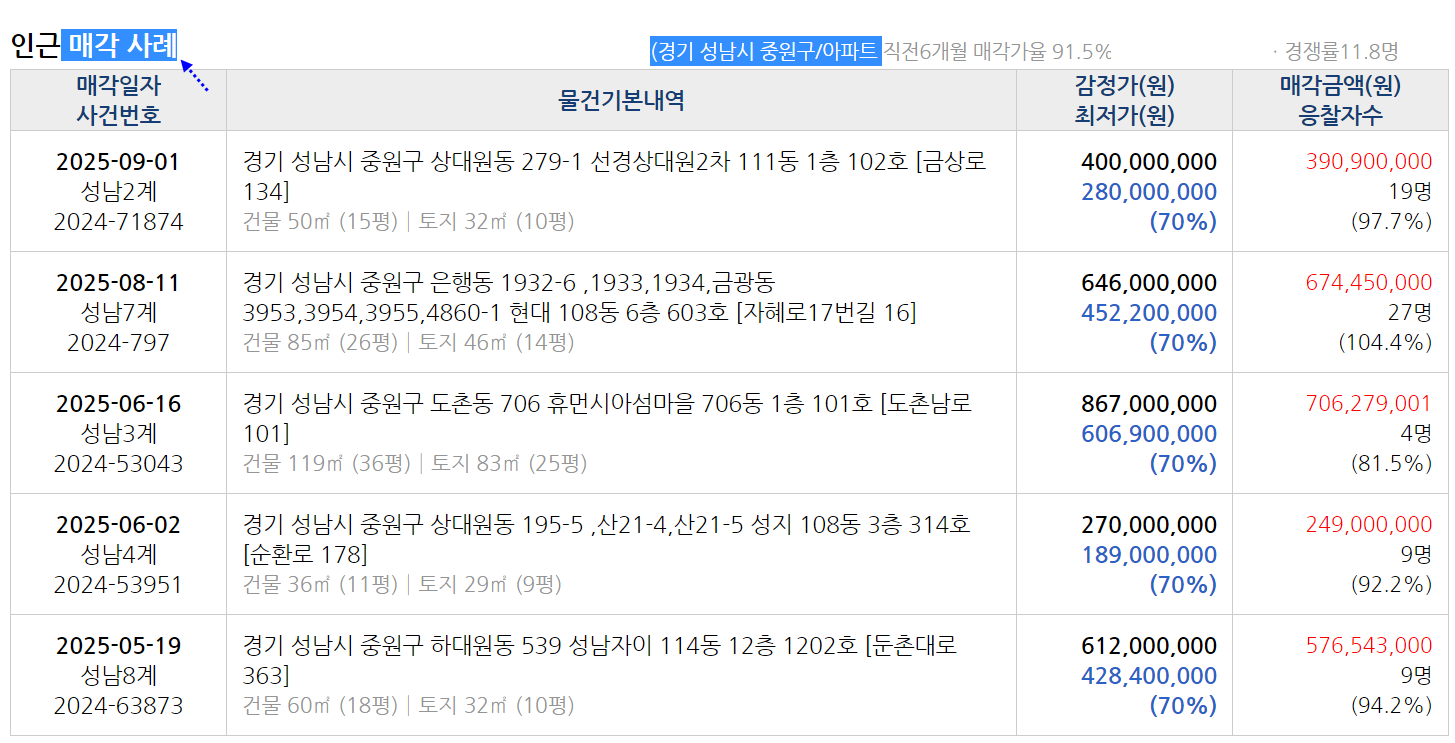| 성남시 단대오거리역세권아파트. 수정구 신흥동 한신APT 25평형 2차경매(24-63118)922 (0) | 2025.09.06 |