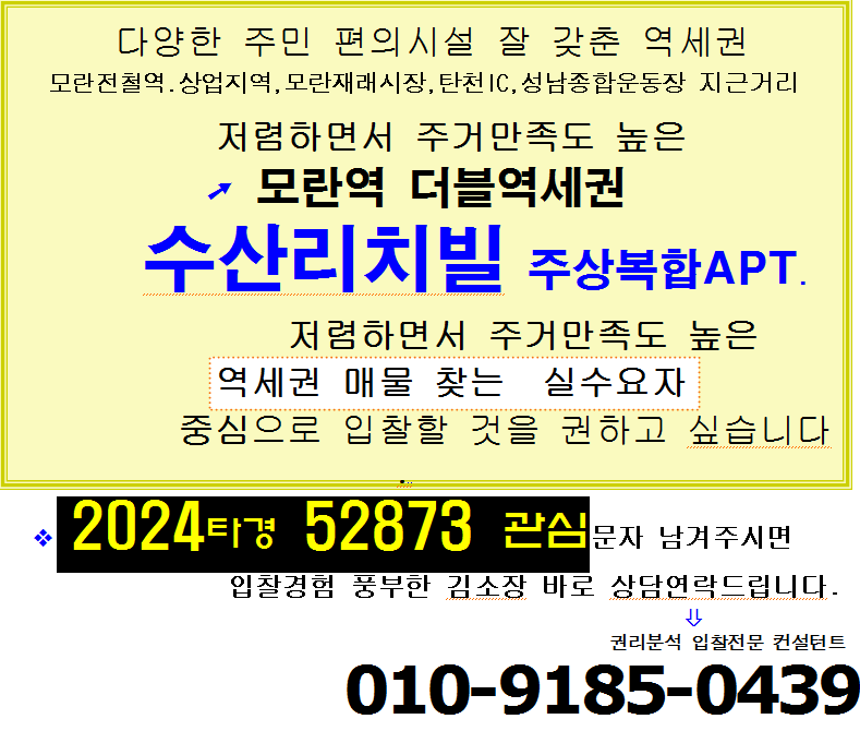 노란궁뎅이 2025. 9. 12. 15:27성남시 중원구 모란역세권아파트. 성남동 수산리치빌 주상복합 35평형 2차경매(24-52873)922