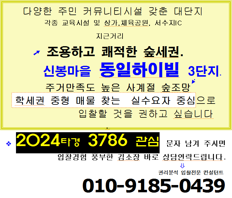 노란궁뎅이 2025. 9. 21. 10:33용인 수지구 숲세권아파트. 신봉동 신봉마을 동일하이빌 3단지 숲조망 58평형 2차경매(24-3786)1014