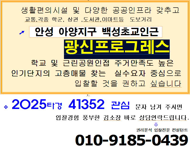 노란궁뎅이 2025. 9. 27. 18:08안성시 아양지구아파트. 옥산동 광신프로그레스 33평형 고층아파트 2차경매(25-41352)1020
