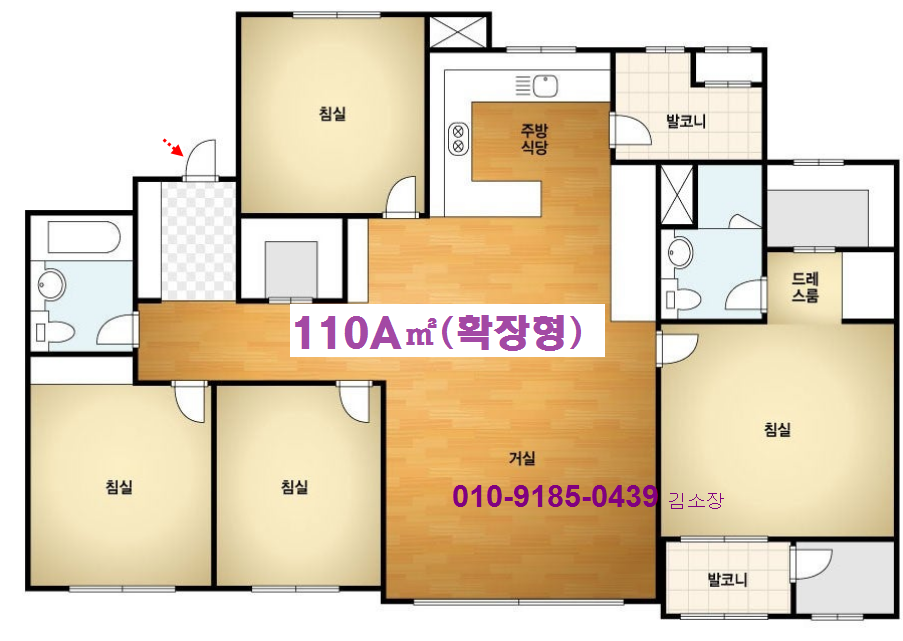 방 4개 .드레스룸.욕실 겸 화장실 2개