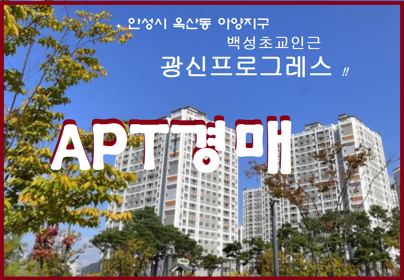 안성시 아양지구아파트. 옥산동 광신프로그레스 33평형 고층아파트 2차경매(25-41352)1020