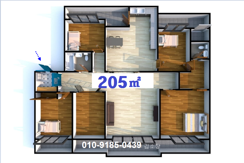 방 4개, 드레스룸,욕실겸 화장실 2개