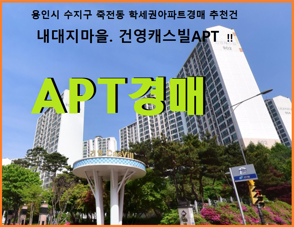 노란궁뎅이 2025. 10. 4. 11:52용인 수지학세권 대단지APT. 죽전동 내대지마을 건영캐스빌 42평형 고층 2차경매(24-73716)1104