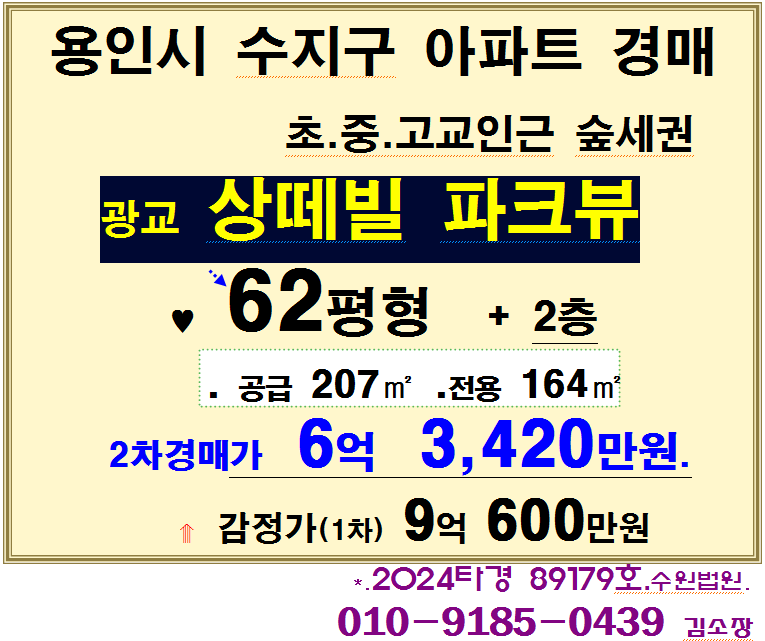 용인 수지구 숲세권.학세권APT. 상현동 광교 상떼빌파크 62평형 2차경매(24-89179)1022