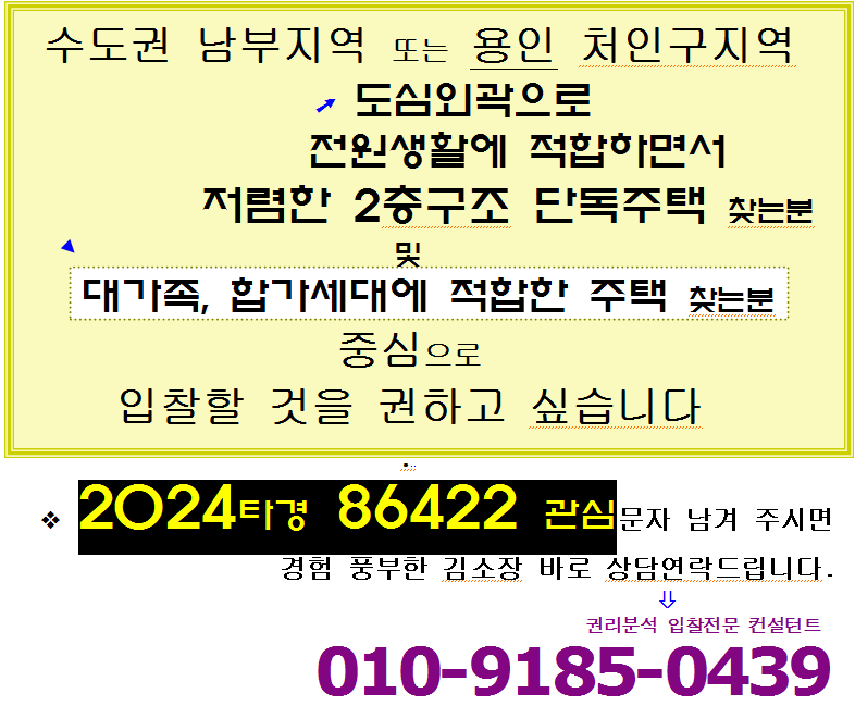 | 용인 처인구 주택매각. 역북동 용인시청인근 재테크형 구축 단독주택 2차경매(24-103099)1110 (0) | 2025.10.04 |