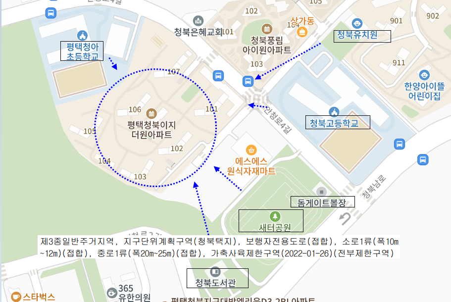 청북도서관,새터공원, 상업지역등