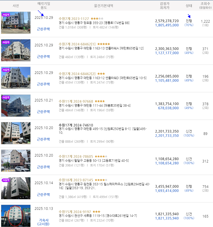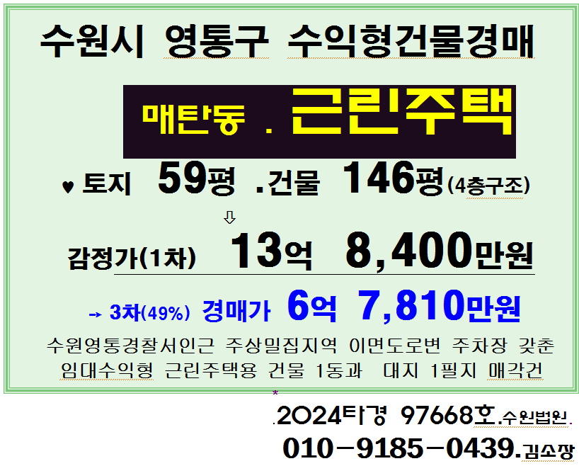 수원시 영통구 임대수익형 건물 반값경매. 4층구조 준신축급 상가주택 3차경매 (24-97668)1021 본문