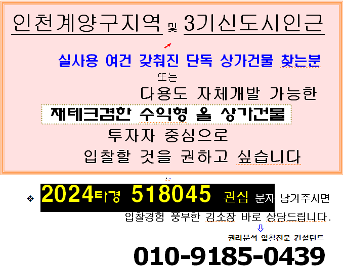 | 수원 권선구 역세권 투자처. 상업지역 대지 재테크형 근린주택 3차 반값경매(24-84259)1114 (0) | 2025.10.18 |