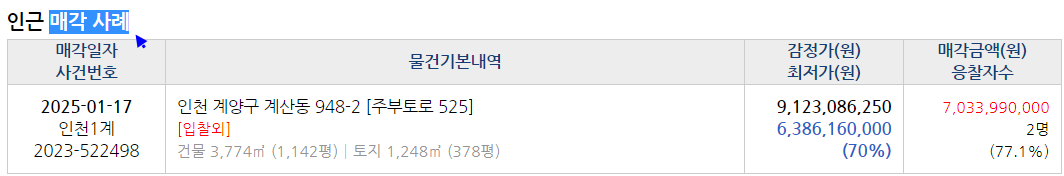아래는 매각건 진행정보