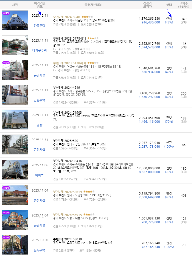 아래는 매각건 진행정보