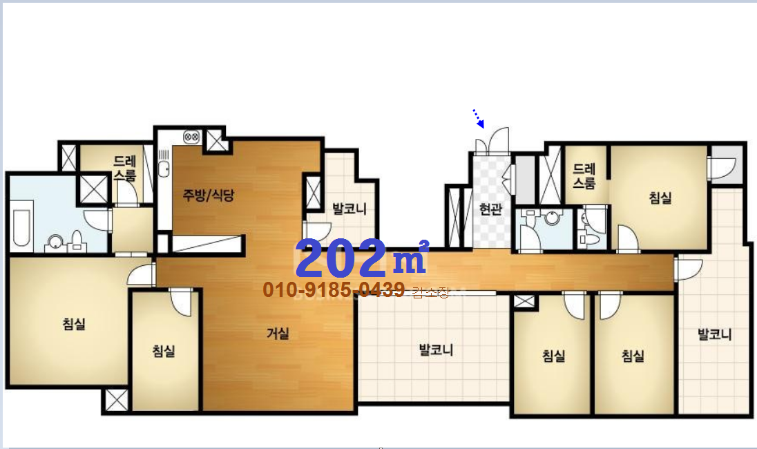 방 5개 ,드레스룸 2, 욕실겸 화장실 3개