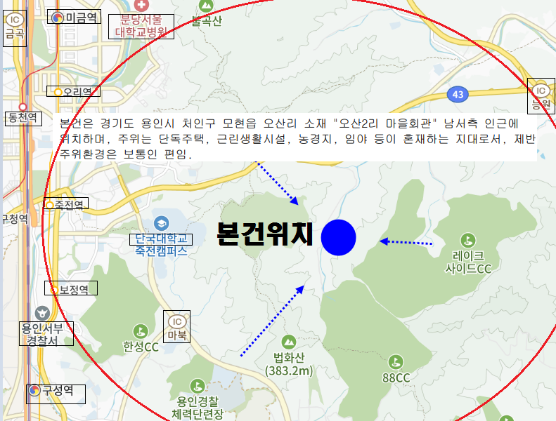 노란궁뎅이 2025. 11. 6. 15:19용인시 처인구 전원주택 매각. 모현읍 오산천변 전원형 단독주택 2동 2차경매(24-83751)1203