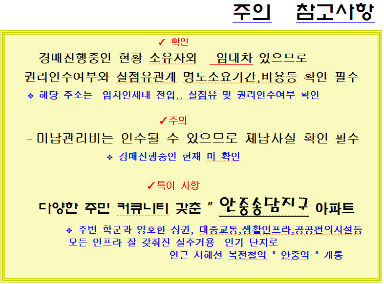 노란궁뎅이 2025. 11. 8. 12:21평택시 안중송담지구아파트. 안중읍 송담지엔하임 1차 30평형 중고층 2차경매(25-41543)1117