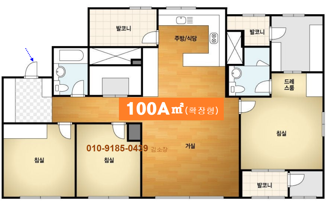 방 3개 ,드레스룸 , 욕실겸 화장실 2개