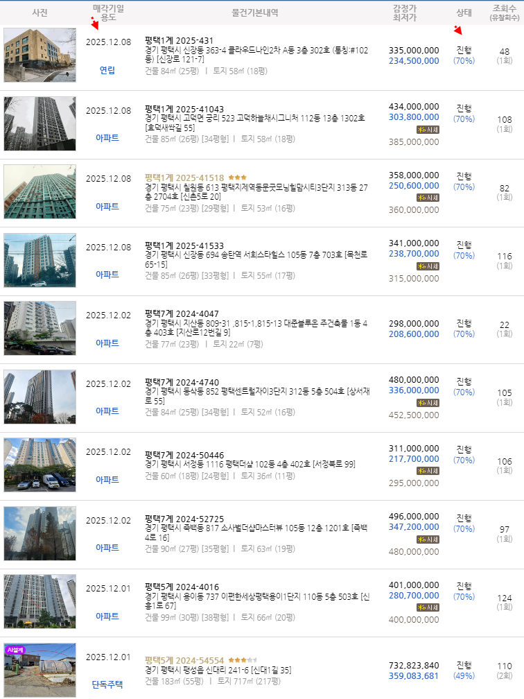 낙찰사례. 경매진행목록 .