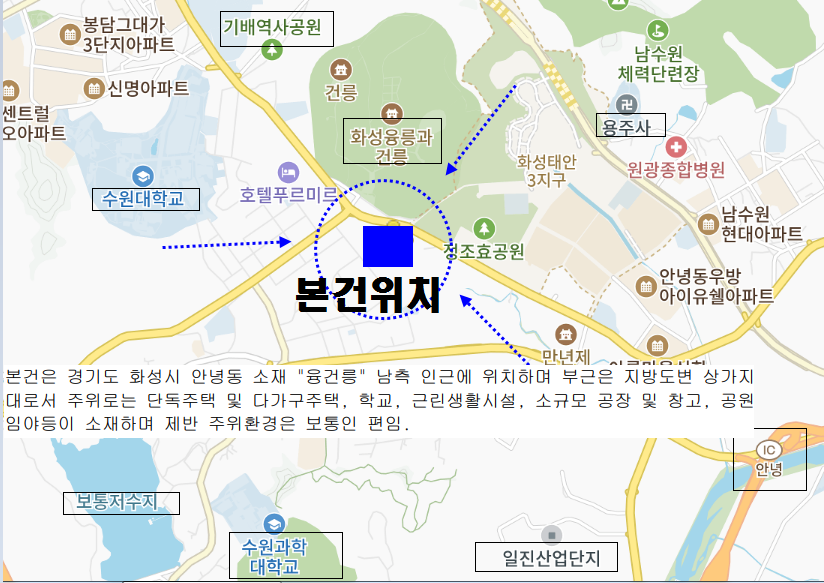 화성 안녕동 수익형건물 반값경매. 융건능인근 도로변 건물 2동 토지578평 3차경매(24-77756)1205 본문