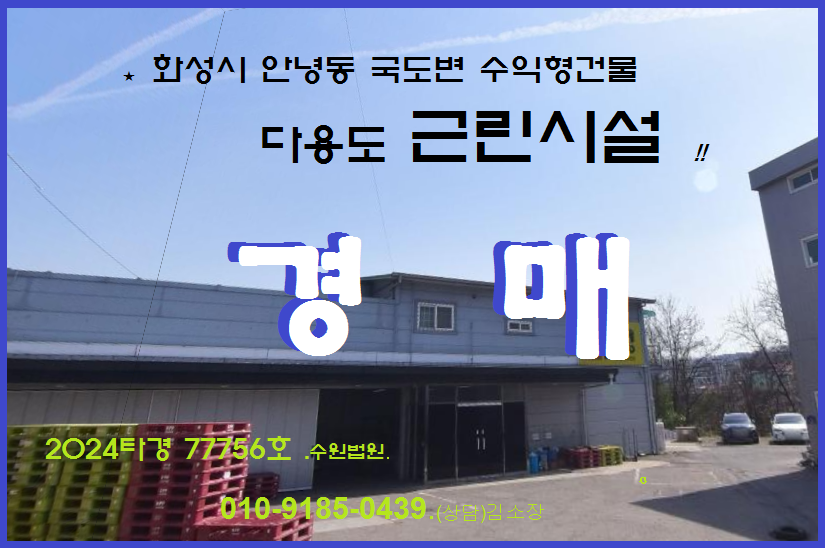 화성 안녕동 수익형건물 반값경매. 융건능인근 도로변 건물 2동 토지578평 3차경매(24-77756)1205