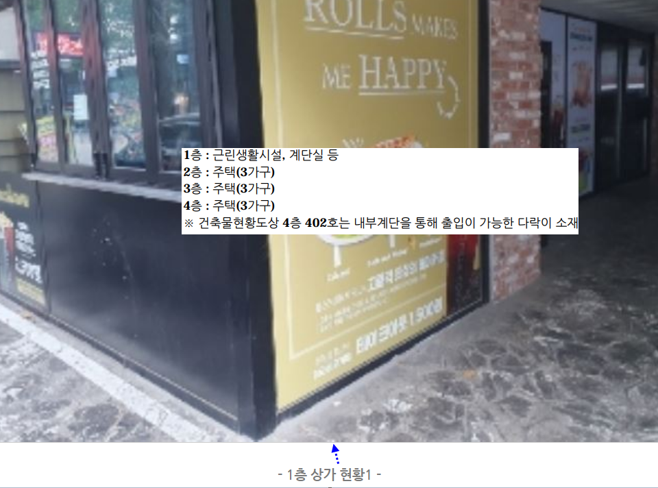 지상 4층구조의 상가 및 주거전용건물 1동과
