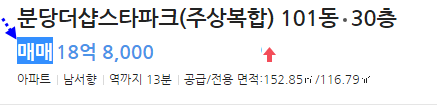 성남 분당구아파트. 정자전철역인근 주상복합 분당 더샵스타파크 46평형 중고층경매(24-57809)1208 본문