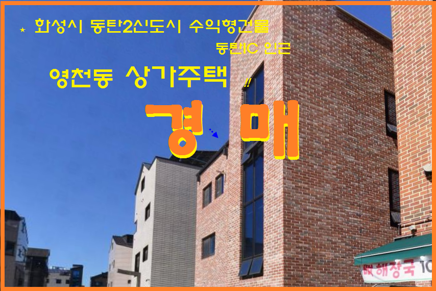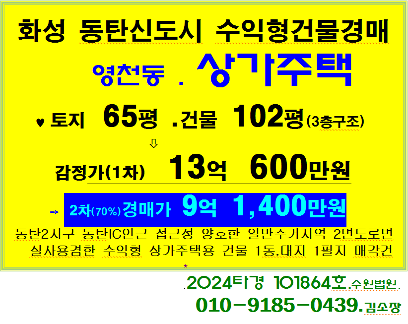 화성 동탄2지구 수익형건물 매각. 영천동 3층구조 준신축급 상가주택 1동 2차경매(24-101864)109 본문