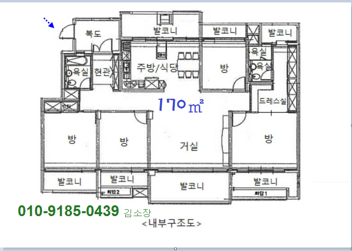 방 4개 ,드레스룸 , 욕실겸 화장실 2개