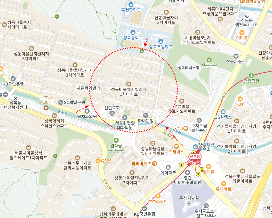 성복천, 성복역등 도보거리
