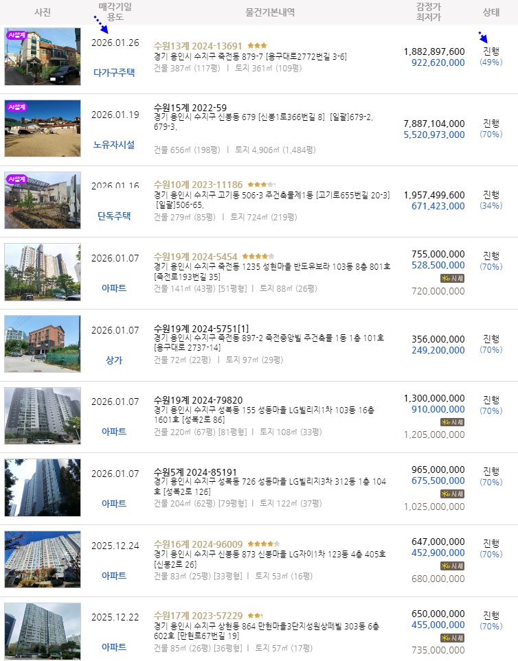 | 용인 수지구 트리플학세권아파트. 죽전동 성현마을 반도유보라APT 51평형 2차경매(24-5454)107 (0) | 2025.12.20 |